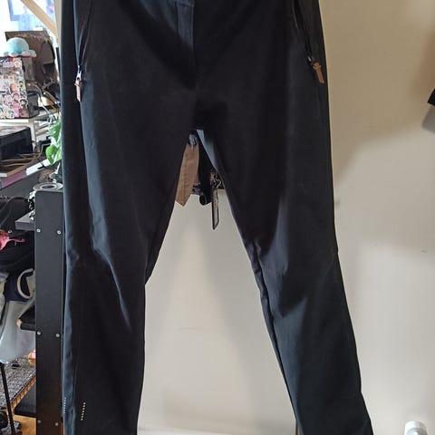 Haltin ulkohousut koko 44. Ehjät. Nyppyä sisäpuolella ja takapuolessa, näkyy kuvissa. Lahkeissa ja vyötäröllä kiristysmahdollisuus. Ostettu käytettynä ja myyjällä ollut koiria, joten housujen sisäpuolella voi olla vielä koiran karvoja, vaikka olen ne tarraharjalla puhdistanut. En ole itse muuta kuin sovittanut kun olivatkin liian isot. Kaikki vetoketjut toimii. Tummemmat kuin kuvissa.