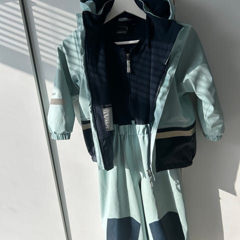 Didriksons Galon sadeasu lapsille, koko 110. Unisex-mallinen kaksiosainen sadeasu, jossa takki irrotettavalla hupulla ja henkselilliset sadehousut. Väri sininen. Materiaali polyesteriä, Galon-pinnoite tekee asusta veden- ja tuulenpitävän. Heijastinyksityiskohtia hihoissa, lahkeissa ja selässä. Soveltuu käytettäväksi ulkoleikkeihin ja sateiseen säähän. Yhdellä lapsella ollut, käytetty mutta hyvä kunto edelleen seuraavalle.