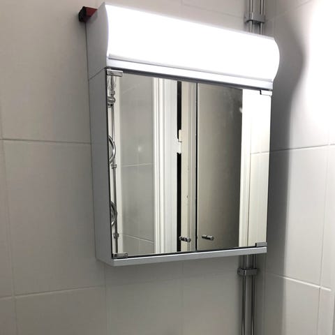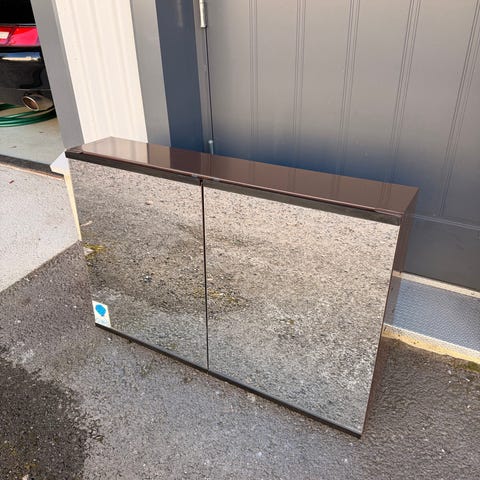 Svedsbergin vanha metallinen kylpyhuoneen peilikaappi. On patinaa, mutta siisti. Mitat syvyys 12,8 cm, leveys 65,3 cm, korkeus 40 cm. Vain nouto.