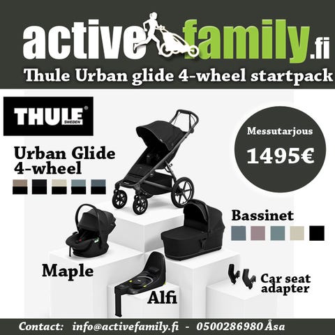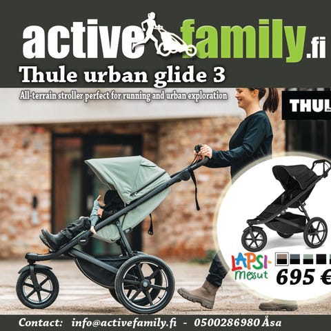 Thulen juoksurattaat kahdelle lapselle. Toimiva ja siisti kokonaisuus. Säilytetty aina lämpimässä sisätilassa. Mukana tulee Thulen oma sadesuoja ja hyttysverkko. Suuret pyörät kulkevat haastavassakin maastossa. Etupyörä on kääntyvä ja lukittava. Erinomaiset rattaat lenkkeilyyn!