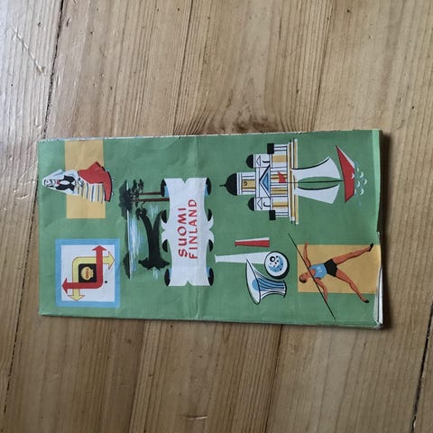 Haitarimallinen, kaksipuolinen, koko avattuna n. 25x63cm, 1950-luvulta. Toimituskulut 3€.