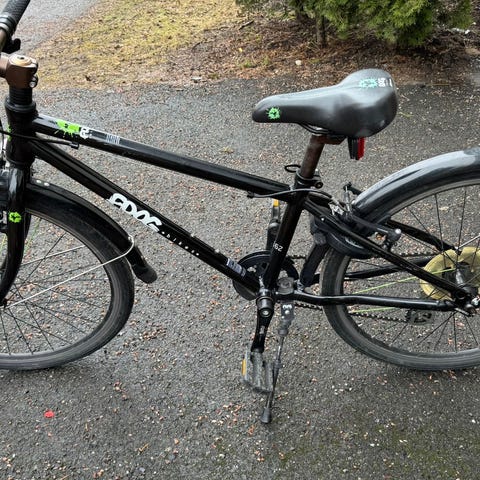 Maastopyörä lapsille 24 tuumaisilla renkailla. Kevyt ja vahva runko. Joustohaarukka 50 mm joustolla tarjoaa lisämukavuutta ja pehmeyttä maastossa. 7 vaihdetta, renkaat juuri täytetty ja ketjut rasvattu. Oikein hyvässä kunnossa. Huom! Toinen käsituppi kadonnut (saa helposti vaihdettua), kaipaa uutta kelloa.