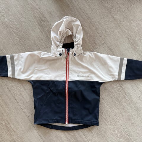 Didriksons sadehaalari koossa 90. Siisti käytetty kunto, en löytänyt reikiä tms. moitittavaa, eli pitäisi olla hyvässä kunnossa edelleen. Haalareissa paikoitellen hieman tummentumaa. Haalarissa ei ole vuorta.
