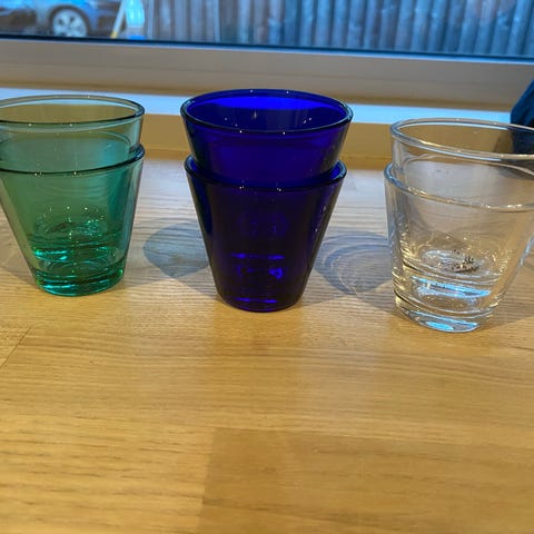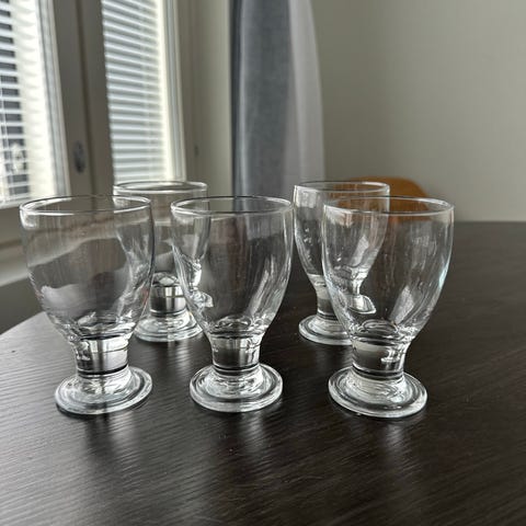 Iittala juomalasit vihreää lasia. Kuvassa kuusi jalallista lasia, jotka soveltuvat esimerkiksi veden, mehun tai muiden juomien tarjoiluun. Väriltään lasit ovat läpikuultavan vihreät ja ne on valmistettu lasista. Sopivat arki- ja kattamiskäyttöön keittiössä tai ruokailutilassa.