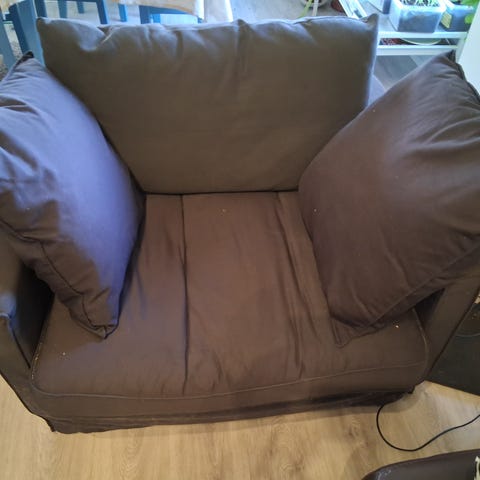 Annetaan punainen nojatuoli. Kankaassa tahroja (en jaksa alkaa hinkkaamaan pois, voi olla että lähtisivät) ja joitain pieniä kohtia mistä lanka purkaantunut. Ollut kissataloudessa. Olen pitänyt itse päällisen kanssa (josta en ole luopumassa). Istuinsyvyys 57cm, leveys 75cm, korkeus (maasta selkänojan korkeimpaan kohtaan) n.75cm.