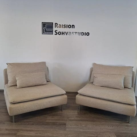 Myynnissä erittäin suuren suosion saavuttanut Ikean Söderhamn sarjan iso kulmasohva. Ryhmä sisältää 2 x 3:n istuttava sohva ja kulmapala. Kaikkien osien rungot ovat ehjät. Päällisten väri: Fridtuna tummanharmaa. Päälliset erittäin siistikuntoiset. Ryhmä kaikki päälliset ovat irrotettavissa pesuun. Rungonpäällinen mukaanlukien. Lisäksi päälliset ovat halutessaan vaihdettavissa. Ryhmän hinta: 819€.