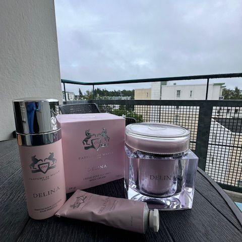 Parfums de Marly Delina naisten tuoksusetti. Setissä on kolme pientä suihkepulloa, joissa eri Delina-sarjan tuoksuja. Sopii esimerkiksi kokeiluun, matkakäyttöön tai käsilaukussa kuljetettavaksi. Pulloissa on suihkekorkit ja ne on pakattu alkuperäiseen laatikkoon.