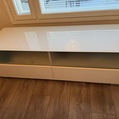Myydään muuton alta tv-taso ja sohvapöytä. Molemmissa lasipinta, tv-taso neljässä osassa.