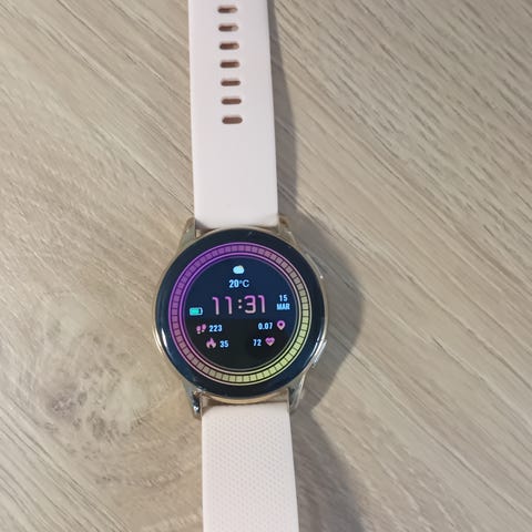 Vain pari kertaa käytetty huippukuntoinen kello. Ei naarmuja, akku kestää useita päiviä. Mukaan laturi.