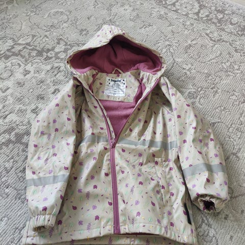 Brittiläinen brändi Joulesin vuorellinen sadetakki susikuviolla. 110cm / 5 years.