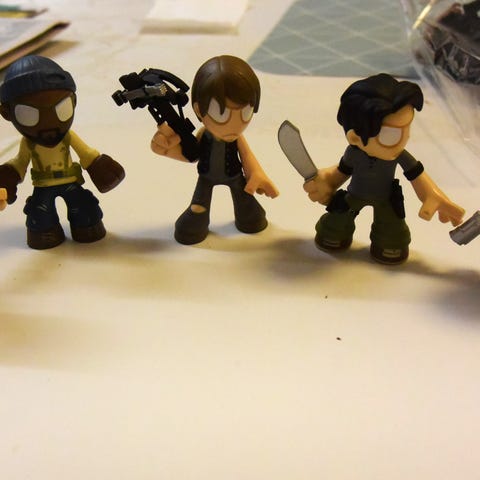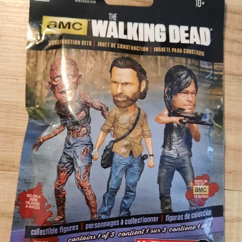 The Walking Dead keräilyfiguuri. Hahmo seisoo erillisellä jalustalla, jossa on sarjan logo. Päällä on yksityiskohtaisesti muotoiltu nahkatakki, huivi ja housut, kädessä piikkilangalla varustettu maila. Sopii hyllykoristeeksi tai osaksi sarjan keräilykokoelmaa.