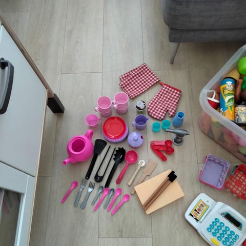 Setti sisältää erilaisia ruoka-aineita esimerkiksi aamupalan tekoon taikka lisukkeeksi muihin keittiö leluihin😊