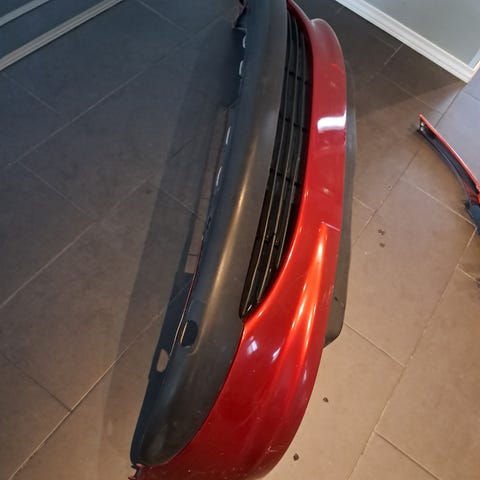 Täysin ehjä takapuskuri, muutama pinta naarmu "kolhu" näkyy kuvissa.