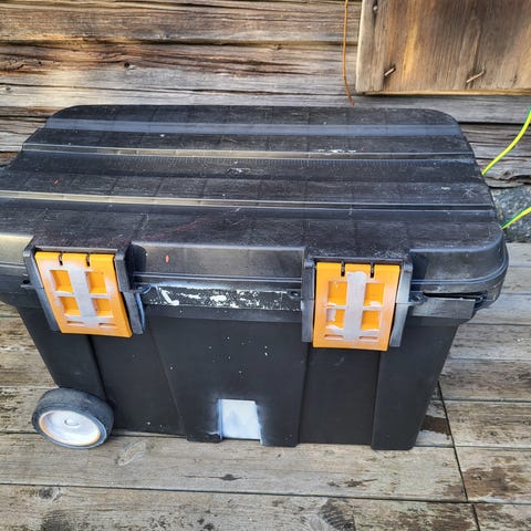 Lähinnä varastossa seissyt Stanleyn pakki kahdella lisäosalla. Saranat ja kannet kunnossa.