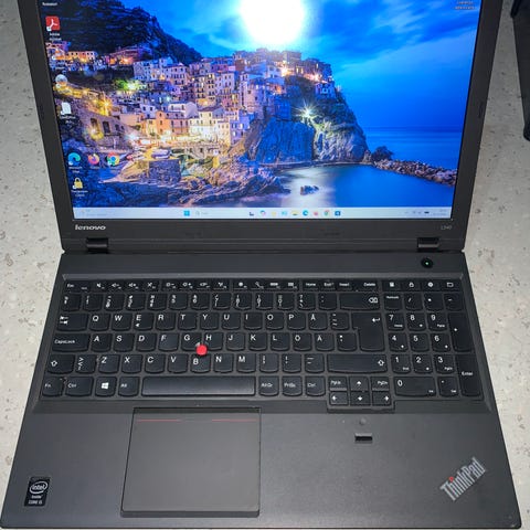 Lenovo kannettava tietokone harmaalla rungolla. Näppäimistö täysikokoinen erillisellä numeronäppäimistöllä ja suurella kosketuslevyllä. Näytön yläreunassa verkkokamera. Käyttöjärjestelmänä Windows 11 Pro. Kone on huollettu ja käyttövalmis