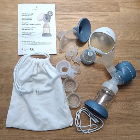 Mukana rintapumpun osia, tuttipullo sekä käyttöohjeet. Pakettiin sisältyy myös Lola & Lykke -maidonkeräyspusseja maidon säilytykseen. Soveltuu rintamaidon pumppaamiseen ja säilyttämiseen vauvan ruokintaa varten.