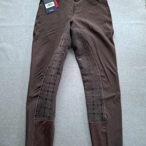 B Vertigo ratsastushousut, koko 42 (EU). Väri tummansininen. Housuissa on sivuilla kontrastiväriset B Vertigo -logoraidat. Kaksinappikiinnitys edessä ja vyölenkit vyötä varten. Materiaali on joustavaa kangasta, joka soveltuu ratsastukseen ja tallikäyttöön.