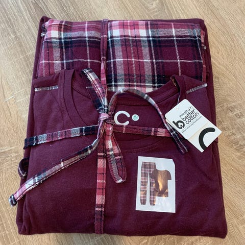H&M paita naisille, koko S. Materiaalina puuvilla. Kuosina monivärinen ruutukuvio, jossa vaalealla pohjalla tummia ja punaisia raitoja. Pitkähihainen malli, jossa kaulus ja napitus edessä.