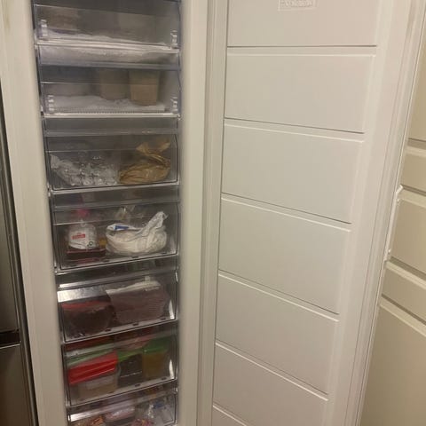 Tilava Bosch kaappipakastin. Pakastimessa on useita läpinäkyviä pakastuslaatikoita. Laitteessa on elektroninen lämpötilansäätö etupaneelissa, jossa voidaan valita eri lämpötila-asetuksia sekä super-pakastustoiminto. Näppärän kokoinen, kun ei ole liian iso eikä pieni.