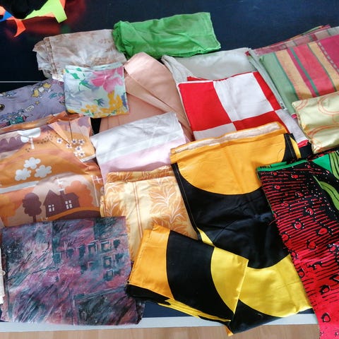 Koko 149 x 149 cm, vahvahkoa puuvillaa. Ei ole pesty.