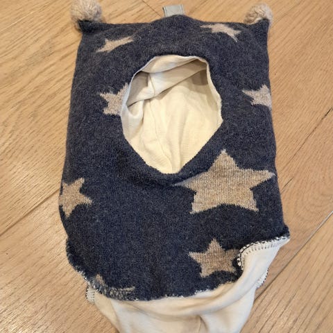 Kivat kypärälakki koko 2 ollut noin 1- vuotiaalla. Villaa 100% , puuvillavuori. Villa on kutistunut jonkun verran joten sanoisin että koko on 1