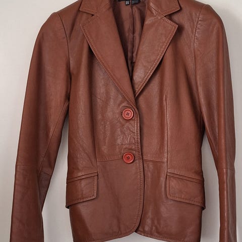 More&More vaalea aito nahkatakki. Kokomerkintä 36 ja mallinukke on 36/S kokoa. (mallinuken cm mitat rinta 87/vyötärö 67). Takissa on joustavat sivut (tuo rypytysosa). Käytetty perussiisti, normijälkiä. Hiha+sivurypytys kuvissa näkyy lähinnä takin "oikea" sävy. Kts. kaikki kuvat. EI sovituksia, ei toridiiliä, en tingi! Nouto tarkka aika etukäteen sovitusti ma-pe kl.10-16 Hki 88 tai postitse .