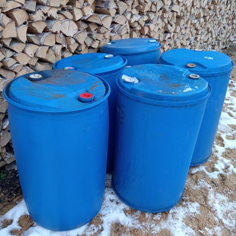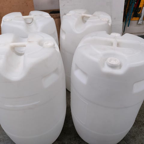 2 kappaletta kuvan mukaisia tynnyreitä. Tynnyri on varustettu irrotettavalla kannella ja sisällä olevalla pahvisella sisäosalla. Sisäosan saa irti. Soveltuu esimerkiksi varastointiin tai kuljetukseen erilaisille materiaaleille tai tarvikkeille. Ei nesteille. Halkaisija 50cm ja korkeus 78cm.