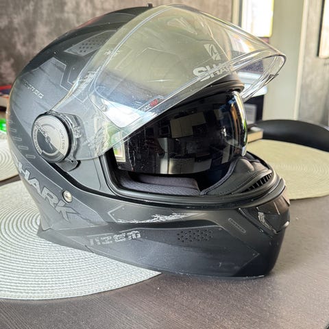 Läpinäkyvällä visiirillä. Kypäräpussi ja pinlock visiiriin mukaan.