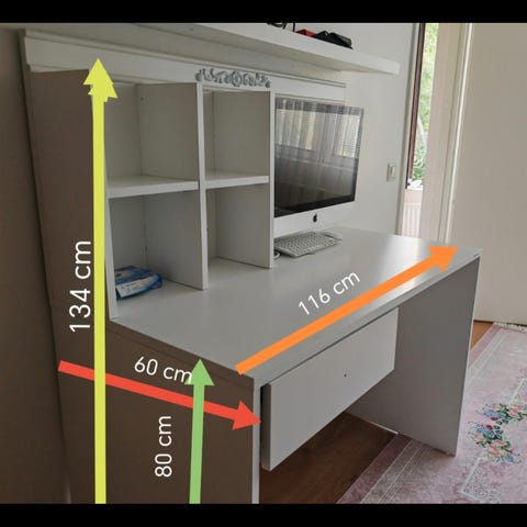 Kansi lastulevyä tmv. Joitain käytön jälkiä, kts. kuva. Edessä kaksi isoa laatikkoa. Pöytä on toiminut myös tv-tasona. Myydään muuton takia.