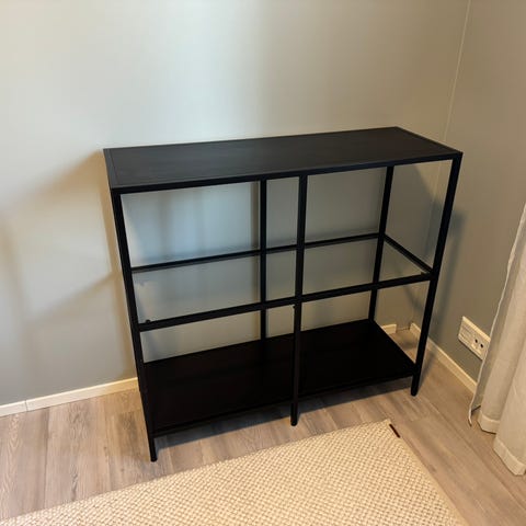 Heti haettavissa käytetty mutta ehjä ja siisti avohylly. Leveys 100 cm, korkeus 170 cm (pyörien kanssa), syvyys 36 cm.