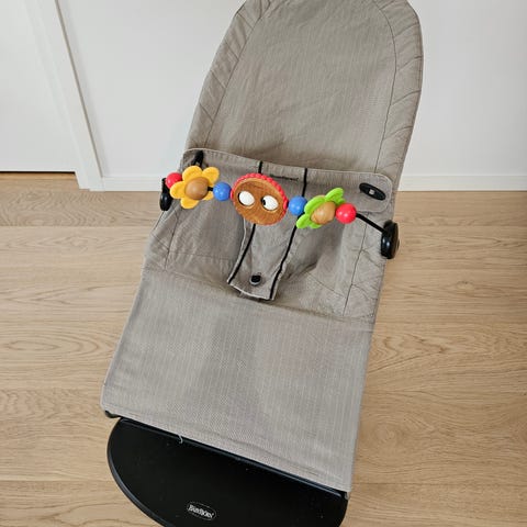 Myydään Baby Björn sitteri, jossa mukana lelukaari. Kangas on konepestävä ja siten helppo puhdistaa.
