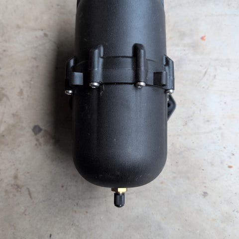 Galvanolmis Oy paineastia. Punainen, metallinen säiliö, jossa yläosassa liitäntäventtiili. Astiassa valmistajan tyyppikilpi, josta ilmenee teknisiä tietoja, kuten tilavuus ja suurin sallittu paine. Soveltuu käytettäväksi esimerkiksi erilaisissa paine- tai lämmitysjärjestelmissä valmistajan ohjeiden mukaisesti.