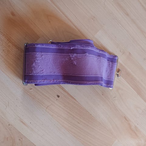 Pehmusteen pintanahka hieman repsahtanut. Voisi varmaan liimalla fixata /pehmuste väliin. Soljet hyvässä kunnossa ja muuten ehjä.