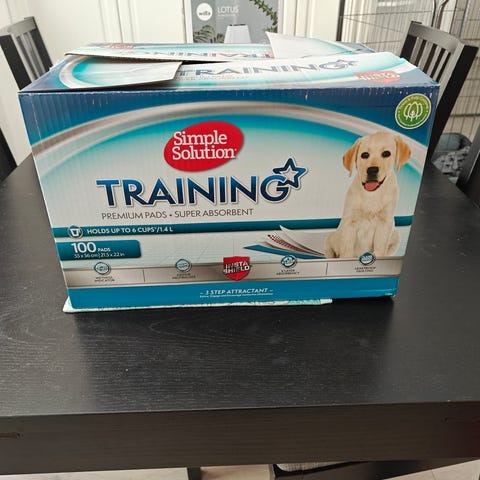 - Pentualustan pidike: muovinen, neliönmuotoinen kehys 60 x 60 cm, joka koostuu pohjasta ja irrotettavasta reunakehyksestä ja niiden väliin asetetaan kertakäyttöinen pentualusta. Ostettiin uutena mutta en muista, mistä eläintarvikekaupasta. Netistä en löytänyt tuotesivuja mutta muistaakseni maksoin noin 30€.
