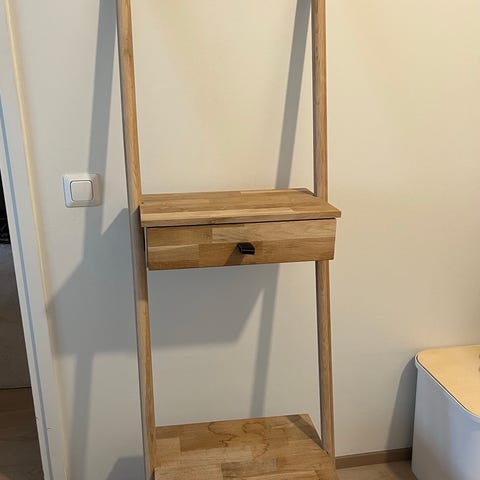 Hyväkuntoinen tukeva mänty hyllykkö. Hyllykkö on ollut käytössä n.2v. Ylähyllyssä on pieniä lyijykynän jälkiä. Muissa hyllyissä ei ole jälkiä. Ostaja noutaa hyllykön.
