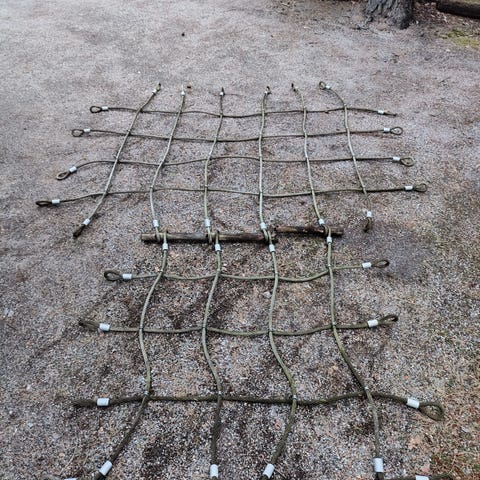 Myydään telinekokonaisuus. Kauppaan ei kuulu voimistelurenkaat, eikä kiipeilyseinän takana pilkottava leuanvetoteline. Nouto Porin Tuorsniemestä.