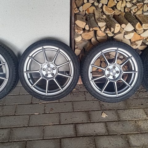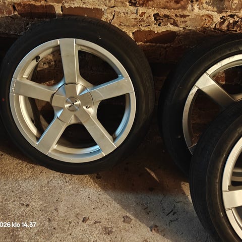 Breyton vanteet kesärenkailla. Hyvässä kunnossa sekä vanteet että renkaat. 6-7 mm jäljellä pintaa renkaista, yksi kesä ajettu. vanteiden pulttijako 5x100, koko 7,5x17 ja ET 35. Renkaat on 225/45.