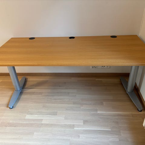 Kaksi sähköisesti säädettävää työpöytää. Toinen on kulmapöytä (oikea). 120 eur / pöytä. 80x160 cm. Kulma osa on 120 cm. Ei ole Ikeasta.