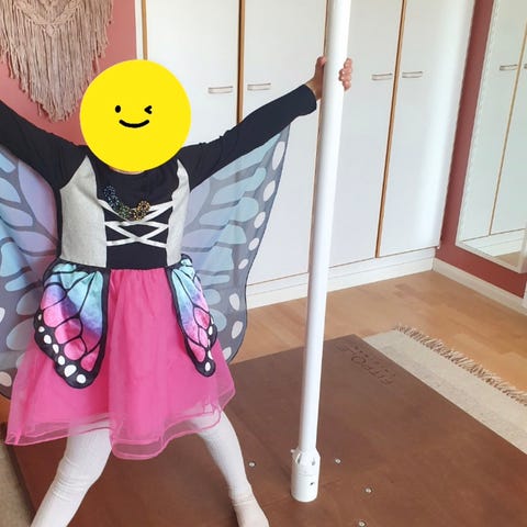 Mukaan turvakuppi, joka kattoon kiinnitettynä estää tangon kaatumisen.