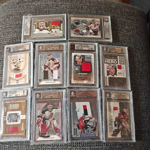 In The Game Ultimate Memorabilia Martin Brodeur jääkiekko keräilykortti. Kortissa on pelaajan kuva, sekä valvava ja hienon värikäs game used mailan pala. Kortti on suojakotelossa. Sopii jääkiekko- ja NHL-keräilyyn, erityisesti Martin Brodeur -aiheiseen kokoelmaan.