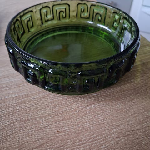 Sininen Hazel Atlas-merkkinen "Capri Blue Dots" lasikulho joka on peräisin 1950 luvulta.