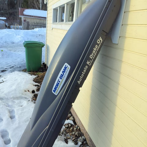 Siisti ja hyväkuntoinen. Mukaan kiinnikkeet ja kaksi avainta. Yksi kiinnike rikki, uusi maksaa Polarautovarusteella 13e. Pysyy kuljetuksen ajan tuollakin.