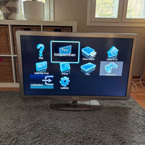 Toimiva Philips 46" televisio. Antenni/kaapeli virittimet. Näkyy normi Hd kanavat. Mukaan kaukosäädin. Virtajohto. Vain nouto/Käteismaksu!