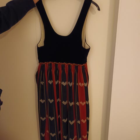 Kansallispuvun pellava/puuvilla paita,koko34/36.Itse ommeltu,olkapää helman korkeus 62cm,hihan pituus hiha saumasta 55cm ja kaula aukosta koko pituus 70cm