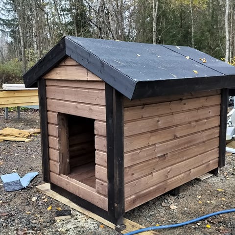 Puinen kaivoaiheinen koirankoppi punainen/harmaa