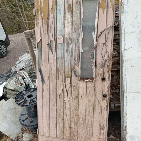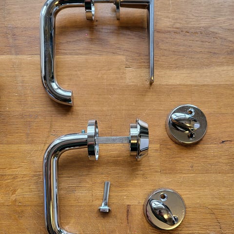 Remontin yhteydessä irrotettu vanhasta ovesta. Ruuvit ovat mukana.