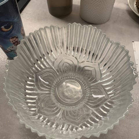 Astian korkeus 10 cm, leveys 13 cm, pohjan leveys 8 cm. Puristettua lasia. Näitä kolme kappaletta. Annetaan hänelle joka ostaa jotain muutakin minulla olevista myyntituotteista. Haku Vuosaaresta.