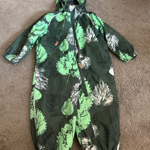 Reiman värikäs kuorihaalari koossa 86.Ok hyvä, pienen pientä pehmeyttä polvissa ja takapuolessa ja hihansuissa pientä rispaantumista