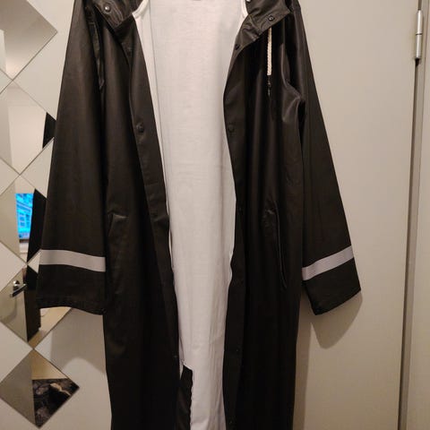 Hyväkuntoinen, vain vähän käytetty sadetakki. Kainalo-kainalo 57cm, pituus 80cm. Täysin siisti ja ehjä.
