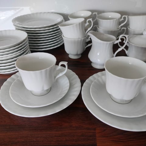 kuvan mukainen astiasto kuppeja ja molempia lautasia 6kpl